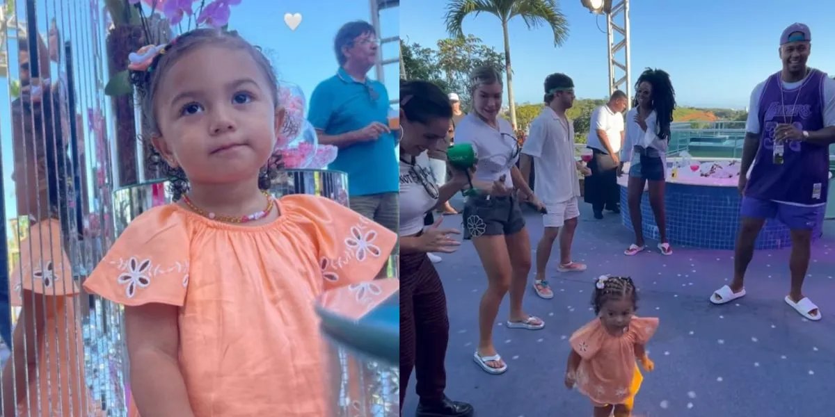 Nos registros é possivel ver a filha do casal dançando ao lado do pai, da mãe e de alguns convidados, ao som de “Tome Tome”, do do grupo Saiddy Bamba, a pequena caiu na dança e chamou a atenção dos internautas.