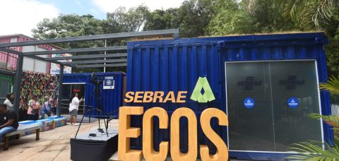 Conceito – O SebraeEcos foi construído com materiais sustentáveis, utilizando bioconstrução e o reaproveitamento de contêineres. São dois módulos, com pergolado metálico com plantas, pavimento permeável, paredes com revestimento de bambu, caminho com pedras naturais, jardim com área de preservação e bancos coloridos em referência aos casarões do Pelourinho. As instalações fazem uso de energia renovável através de painéis fotovoltaicos, além de teto verde, unidade de demonstração de reuso de água, totens interativos, mesas e quadros informativos.