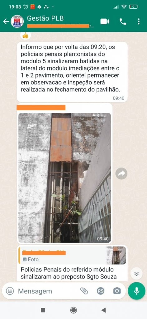 Antes, às 9h40, foi informado que 20 minutos antes, Policiais Penais plantonistas do Módulo 5 sinalizaram batidas nas imediações entre o 1º e 2º pavimento.