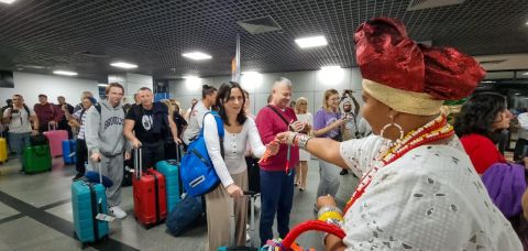 O voo charter da companhia aérea Lot Polish pousou no aeroporto de Salvador, neste domingo (29), no fim da tarde, vindo de Varsóvia, com 292 turistas poloneses a bordo. Eles tiveram receptivo da Secretaria de Turismo do Estado ( Setur-BA), com capoeiristas, baianas típicas e a percussão do bloco afro Muzenza. A cônsul-geral da Polônia em Curitiba, Marta Olkowska, e a chefe de gabinete da Setur-BA, Giulliana Brito, deram as “boas-vindas” aos visitantes.