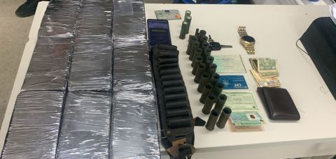 O carro modelo Gol foi interceptado e cercado pelos policiais civis e militares. Dentro do veículo foram localizados nove tabletes de cocaína, munições e um celular.