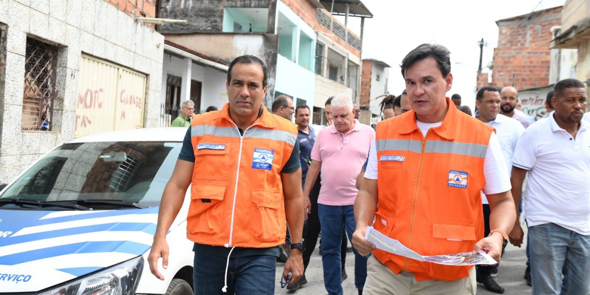 “O trabalho de enfrentamento aos efeitos das chuvas ocorre todos os dias do ano. Já são mais de 500 áreas protegidas em Salvador, o que fez a cidade estar muito mais preparada e resiliente. A comunidade do Mamede tem sistema de alerta e alarme, mas hoje, com nossa equipe, estamos tomando a decisão de elaborar projetos para diversas intervenções, a fim de trazer segurança e tranquilidade para as famílias que moram aqui”, destacou Bruno Reis, ao lado de secretários e gestores municipais.