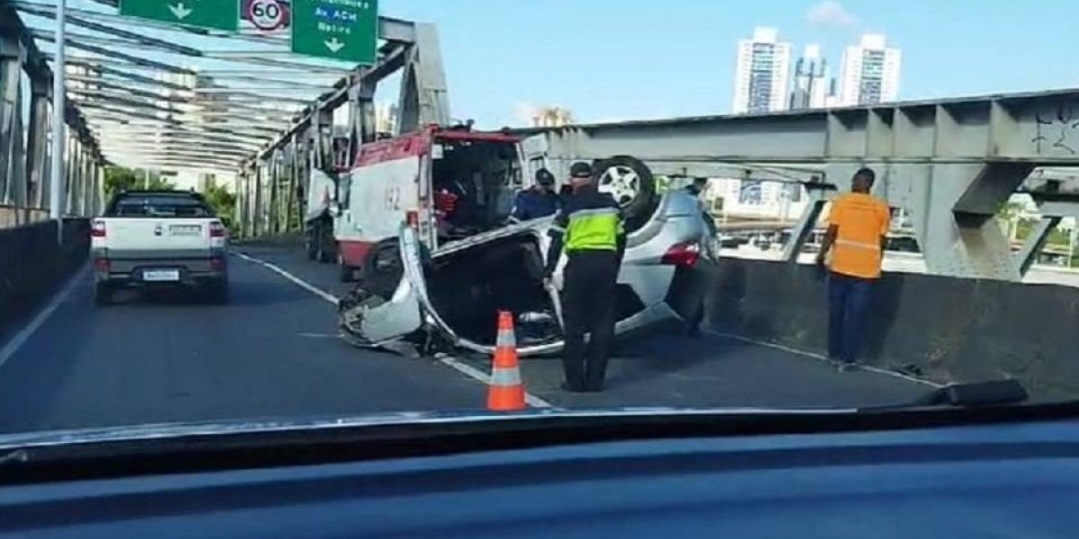 Carro capota em viaduto que dá acesso a Via Expressa em Salvador