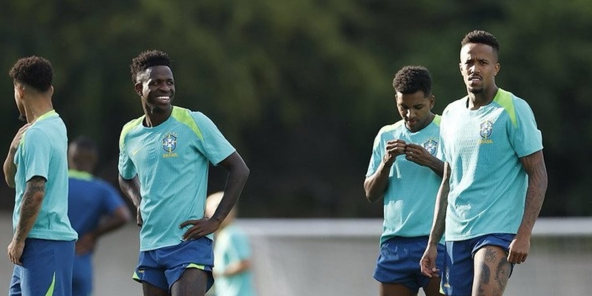 Escalação do Brasil: Alisson, Danilo, Éder Militão, Marquinhos e Guilherme Arana; João Gomes, Bruno Guimarães, Lucas Paquetá; Raphinha, Rodrygo e Vinicius Junior.