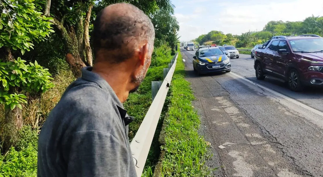 Um homem aparentemente desorientado foi resgatado às margens da BR-324 por agentes da Polícia Rodoviária Federal (PRF). O resgate aconteceu nesta terça-feira, 25, quando os policiais foram acionados por um caminhoneiro que relatava da presença de um homem pendurado na porta do veículo de carga.