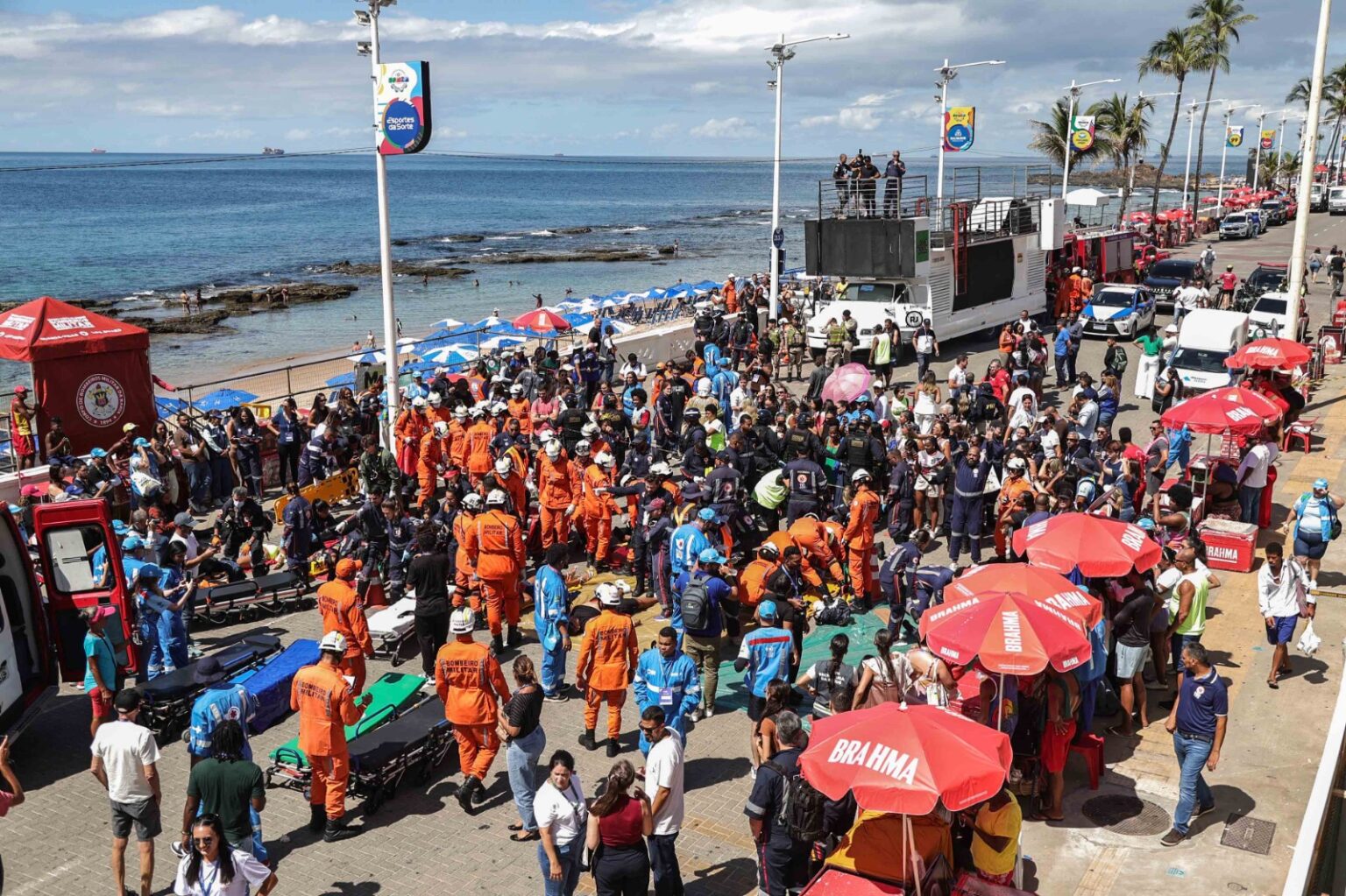 Durante a simulação, por exemplo, um condutor de um trio elétrico passou mal, perdeu o controle do veículo e provocou um acidente com atropelamentos. A partir daí, forças de segurança e saúde atuaram de forma coordenada, com atendimento no local, imobilização das vítimas e encaminhamento por ambulâncias e helicóptero para unidades de saúde.